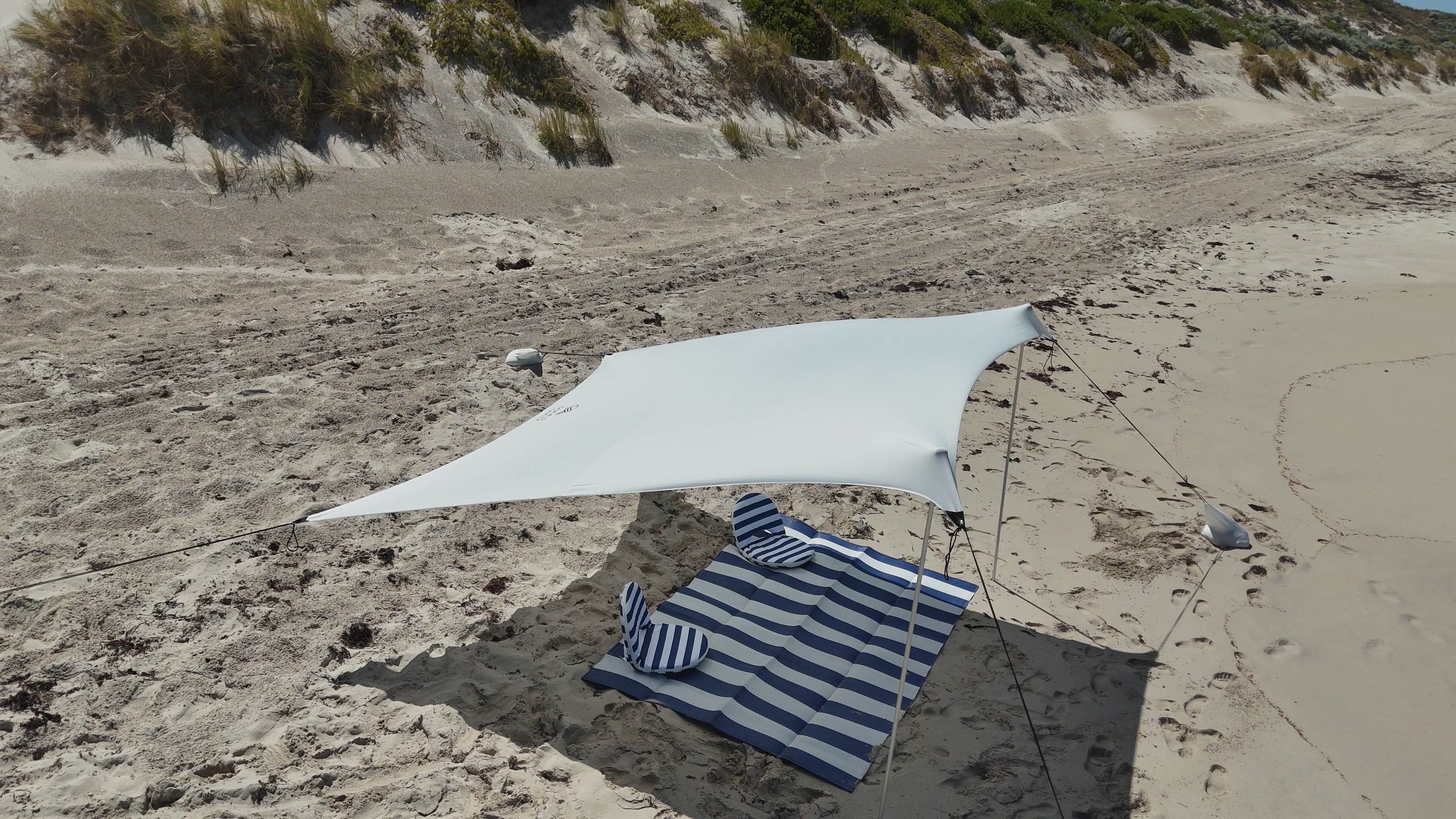 Lightweight, durable, and beautifully simple, it packs into a compact, water-resistant shoulder bag that’s easy to carry from car to shoreline. The premium UPF50+ Lycra canopy gives families or groups the protection they need, with an open, breezy design that helps keep everyone cool.